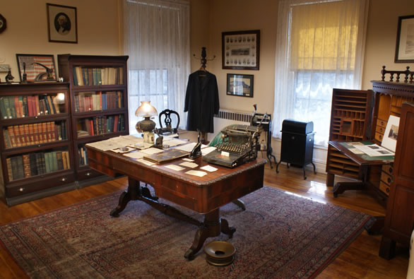 Originally a guest room, the Coal Executive’s Office displays turn-of-the-century furnishings and business equipment in an office setting. Among the items of interest are a Dictaphone Transcribing Machine, Wooten Patent Desk, and The Calligraph No. 2 typewriter. |