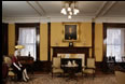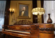 The spacious, formal living room is designed for special occasions. It features ornate woodwork, a fireplace fronted with Italian marble, Rococo and Empire furniture, and a unique Kashan rug. The oil painting above the fireplace is that of Mary Catlin’s mother, Sarah Augusta Templeton Frothingham Archbald. |